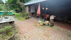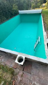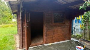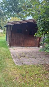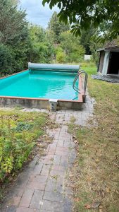 Hier folgen noch einige Bilder die den bereits komplett sanierten Pool zeigen und das Gartenhaus, sowie die neue Tür zum Geräteschuppen.