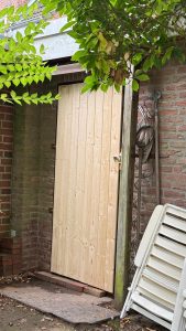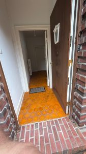 Die dunkelbraun gestrichenen Türen werden weiß lackiert. Die Haustür wir neu lackiert.