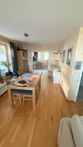 Bereits im Erdgeschoss empfängt Sie ein ca. 30 m² großer Wohn- und Essbereich mit halboffener Küche, der ein offenes und einladendes Raumgefühl vermittelt.
