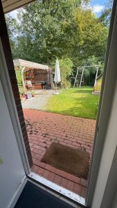 Das Wohnzimmer wurde durch einen ca. 24 m² großen Wintergarten erweitert, der mit hochwertigem Echtholzboden ausgestattet ist und den Wohnraum spürbar vergrößert. Der Garten ist pflegeleicht mit Rasen angelegt und bietet dank der Westausrichtung ideale Voraussetzungen für sonnige Nachmittage und entspannte Abende. Gerade in Verbindung mit dem Wintergarten lässt sich dieser Außenbereich über viele Monate hinweg komfortabel nutzen.