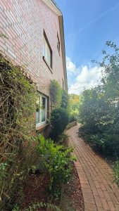 Der hintere Teil des Gartens ist ansprechend gestaltet und bietet ein offenes Gartenhaus sowie eine Spielecke für Kinder. Am Ende der Auffahrt steht Ihnen ein Carport für Ihren PKW zur Verfügung.